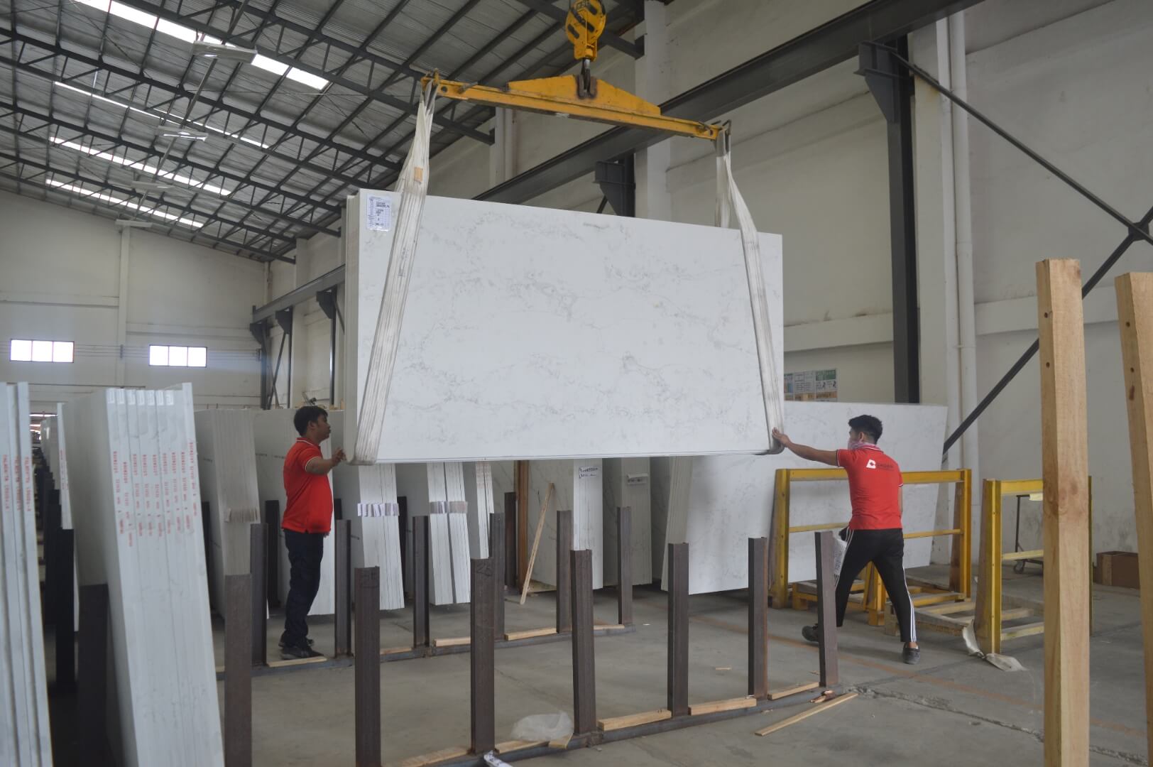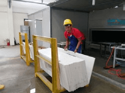 We use fork lift and huge machinery to ensure the safety of our workers and stone slabs.